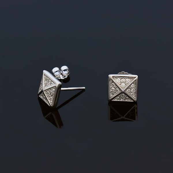 925 Sterling SilverSquare Earring inlaid by Crystals..