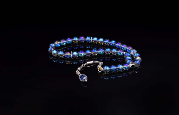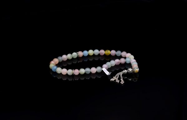 Rosary ٌColorful Aquamarine Stone inlaid with 925 Sterling Silver Weight:32 gsize: 8 mm33 pills..