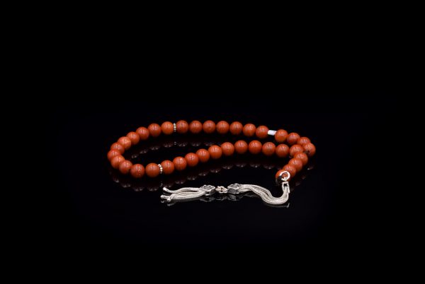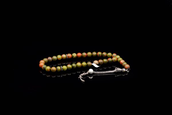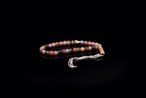 Rosary ٌMadagascar Agate Stone inlaid with 925 Sterling Silver Weight:33 gsize: 8 mm33 pills..