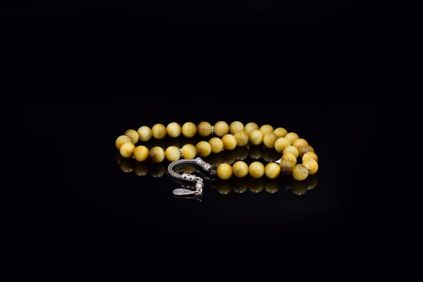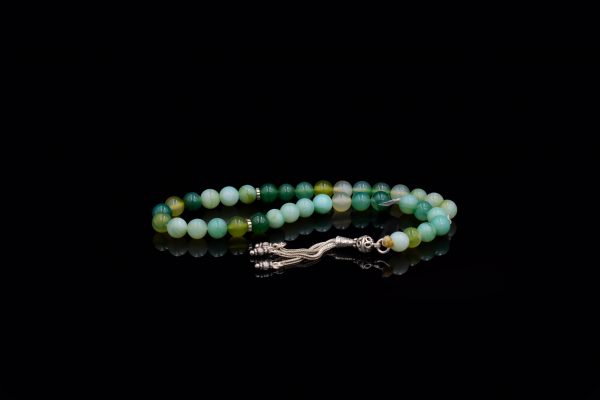 Rosary ٌCold agate stone inlaid with 925 Sterling Silver Weight:28 gsize: 8 mm33 pills..