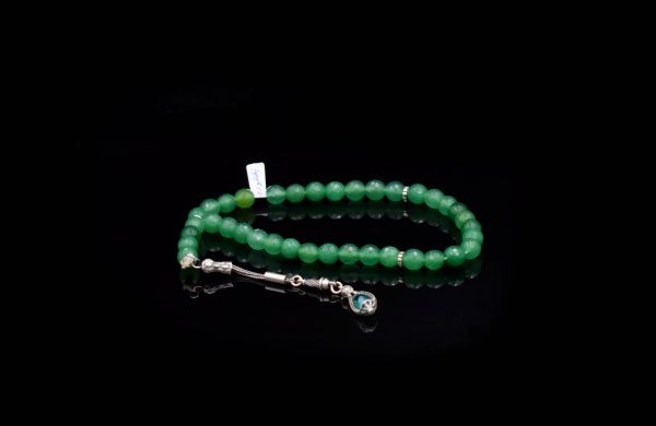 Rosary ٌAventurine Stone inlaid with 925 Sterling Silver Weight:25.3 gsize: 7 mm33 pills..
