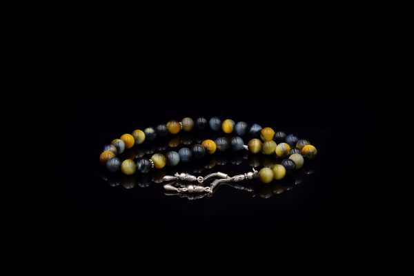 Rosary ٌTiger's Eye Stone inlaid with 925 Sterling Silver Weight:61.8 gsize: 10 mm33 pills..