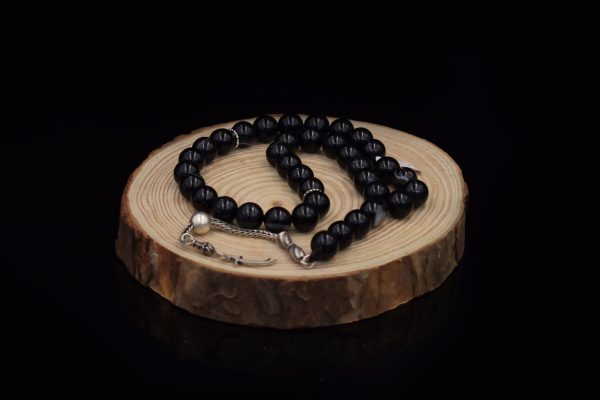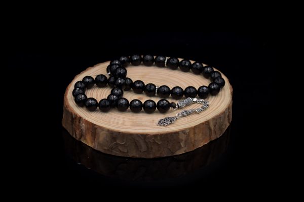 Rosary Onyx stone inlaid with 925 Sterling Silver Weight:57.3gsize: 10mm33 pills..