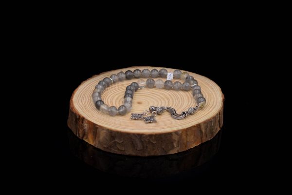 Rosary Cold agate stone inlaid with 925 Sterling Silver Weight:29gsize: 8mm33 pills..