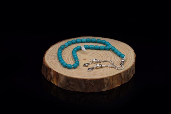 Rosary Turquoise stone inlaid with 925 Sterling Silver Weight:22.6gsize: 8mmx7mm33 pills..