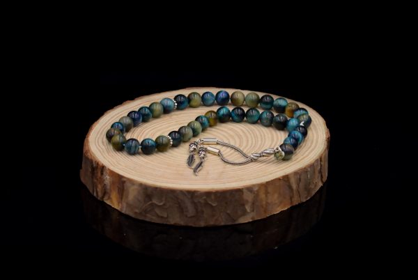 Rosary Tiger's Eye Stone inlaid with 925 Sterling Silver Weight:34.5gsize: 8mm33 pills..