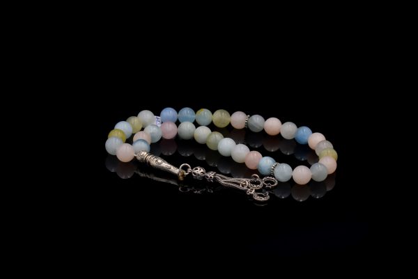 Rosary Colorful Aquamarine Stone inlaid with 925 Sterling Silver Weight:55.3gsize: 10mm33 pills..