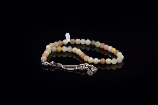 Rosary Leaved Agate stone inlaid with 925 Sterling Silver Weight:61.2gsize: 10mm33 pills..
