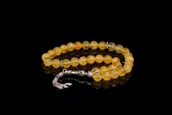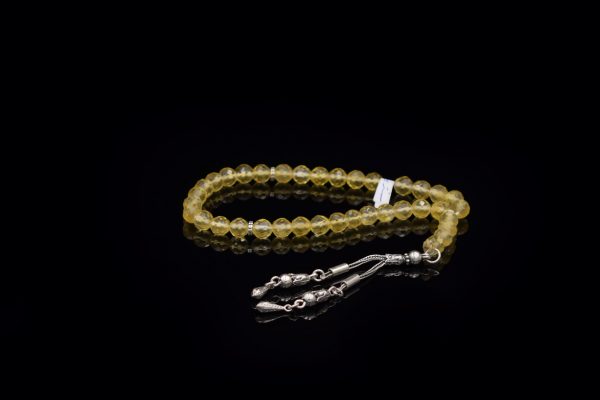 Rosary Citrine stone Diamond shape inlaid with 925 Sterling Silver Weight:23.6gsize: 7mm33 pills..