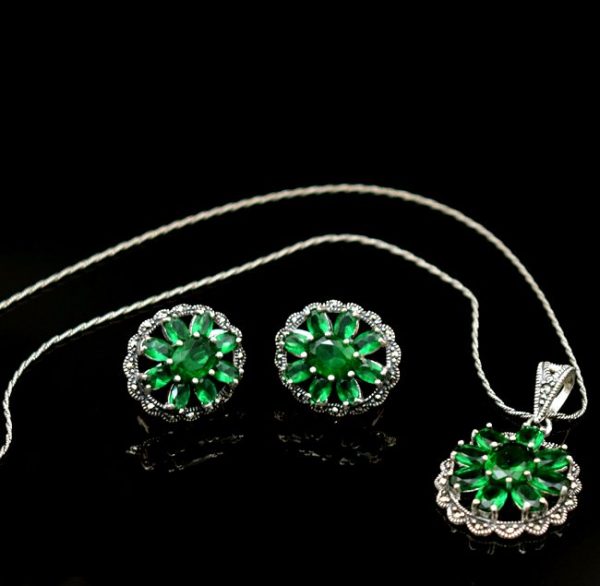 925 Sterling SilverHalf set silver inlaid with Emerald stoneHand Made...