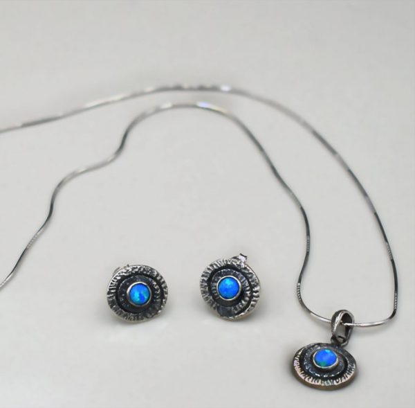 925 Sterling SilverHalf set antique silver inlaid with Opal stone.Hand Made...
